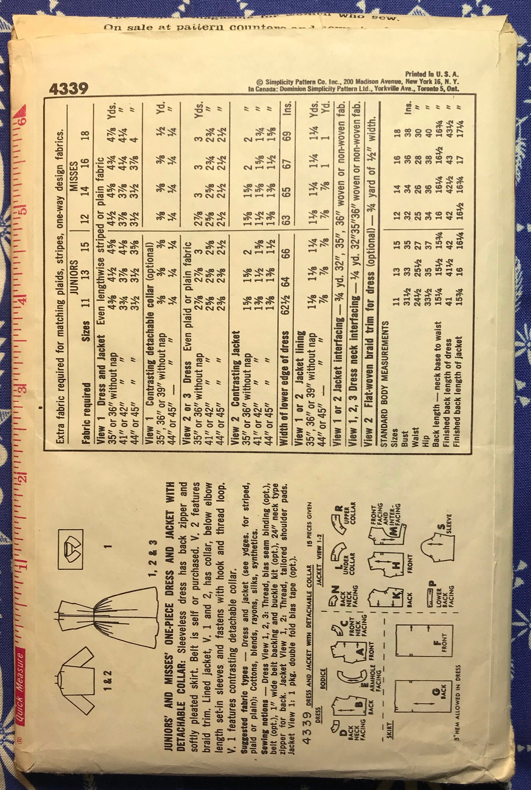 1960s Vintage Dress Pattern Simplicity 4339 34 Bust Etsy